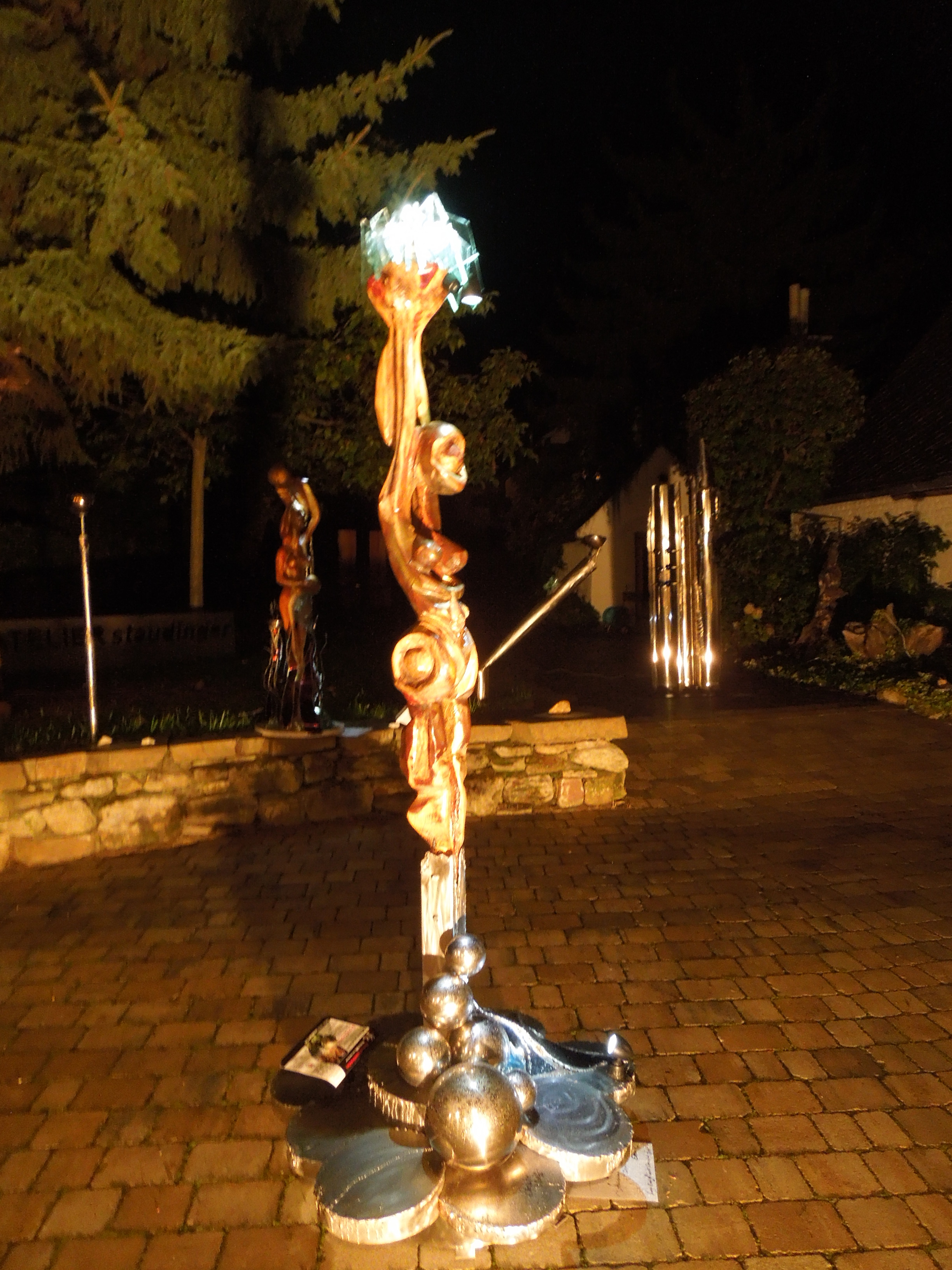 „UTOPIA“ Raab – Strehwitzer 1. Oktober 2015Wood`n SteelGerald Strehwitzer Beschreibung: Abstrakte Holzskulptur von Raab Harry – Edelstahlsockel und Glaskrone von Gerald Strehwitzer, Funktion der Skulptur mit LED Licht im Sockelbereich und Glaskrone,- angespeist mit einem Solarpaneel. € 6.800,–